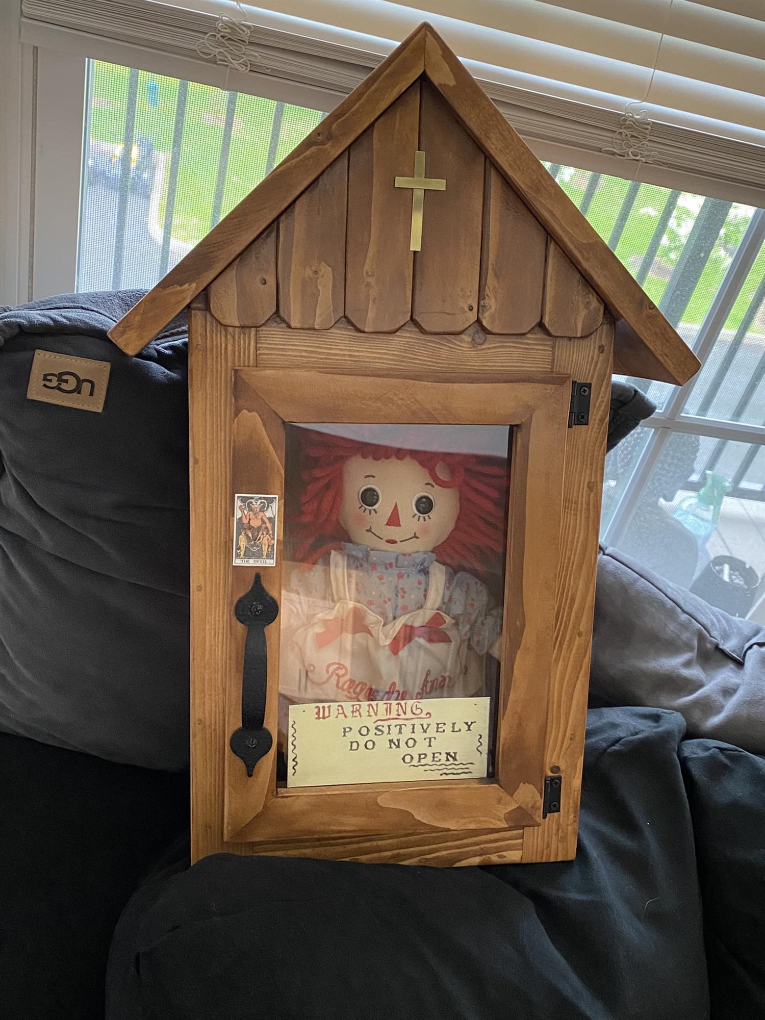 The doll is a 12" Raggedy Anne doll in a custom wooden case, made to look like that of the real Annabelle. It is a great display piece, and a fun and safe way to incorporate some of the paranormal and horror world/history into your home decor.